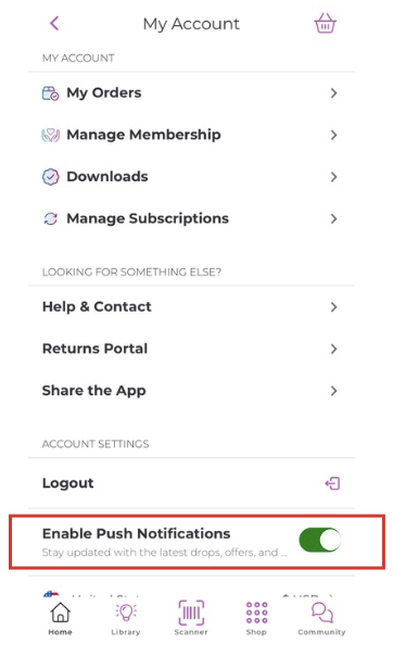 Account page, then Toggle "Enable Push Notifications". You can change this setting at any time!